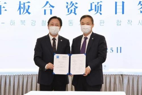 6月25日,河钢集团与韩国株式会社POSCO以视频会议形式举行河钢POSCO汽车板合资项目签约仪式,正式落地实施年产135万吨的高端汽车面板项目,将双方全面合作关系推向新的高度。