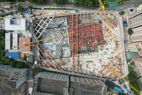 自开工以来,项目累计开挖地下土方量约156000立,桩施工1700多根,底板浇筑约12600平,累计浇筑混凝土约11000立,支护施工三轴搅拌桩132幅,咬合桩337根,排桩131根,立柱桩62根。项目基坑最深为14.4米,最大底板约3350平,混凝土约3100立。