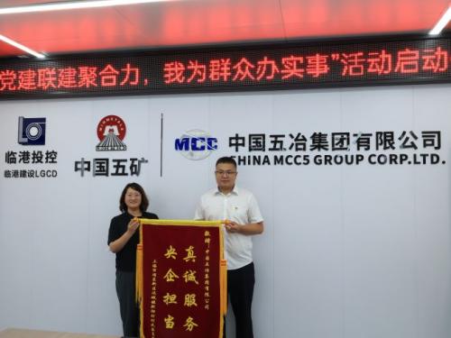 泥城镇新泐村村民委员会为中国五冶项目部送上锦旗,感谢项目团队为泥城镇的建设发展做出的贡献。