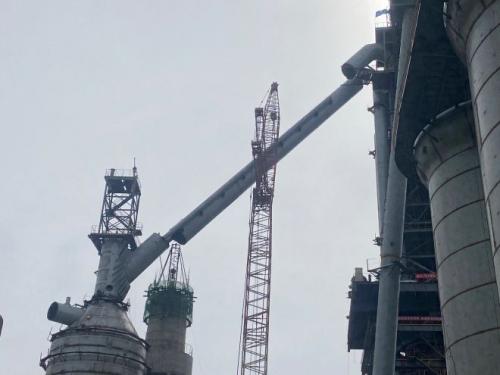 该项目位于甘肃省嘉峪关市酒钢集团宏兴钢铁股份有限公司厂区内,拟新建一座2070立方米高炉本体。自2023年4月1日高炉炉壳首吊起,项目部始终坚持提前谋划、精心组织,克服了当地气候恶劣、工期紧张等不利因素,为钢结构封顶工作奠定了坚实基础。此次吊装的最后一段钢结构为高炉下降管,整体长为48.23米,重达86吨,采用400吨履带吊进行作业。为确保吊装安全、顺利完成,项目部根据实际情况制定了详细周密的施工方案,加强安全技术交底,合理调配人员、机械。吊装当天,随着项目负责人一声令下,最后一钩顺利起钩,随后钢结构精准安装到位,高炉主体结构顺利封顶,较计划节点提前17天完成。