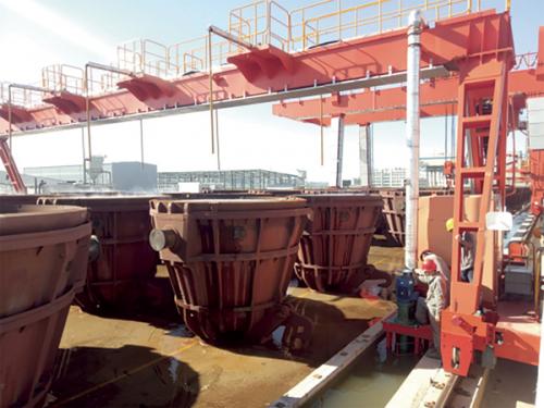 中冶宝钢第一件新型焊接渣罐样罐使用至今6年多,仍使用正常。与铸造渣罐相比,“中冶重机”新型焊接渣罐具有缓冷时间可控、材料机械性能好、安全可靠性高、制造过程环保、焊接性能强、易于修复、制造维护成本低、工艺工况适应能力强、寿命长、经济性优越等特点,被推广到国内外有色冶炼市场,并受到广泛认可和青睐。该技术也成功在黑色冶金企业进行推广,同样取得良好的应用效果。近3年,“中冶重机”推出的新型球底焊接渣罐产品占已知的国内外渣罐新增市场的60%以上。