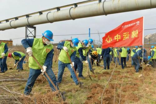 此次绿化美化种植活动,各级党组织、区域协作单位高度重视,通过广泛动员,干部职工参与热情高涨,活动启动当天,各单位集结劳动大军,带好铁锨、洋镐、水桶等植树工具,浩浩荡荡地奔赴公司厂区北侧植树点,领取任务,迅速开工。活动现场,党旗、团旗、司旗、团队旗迎风飘扬,红旗招展,广大党员干部充分发挥示范带头作用,冲在前、干在前,带领本单位职工积极参与树木移栽工作,大家分工明确,挥锹挖苗、结队运苗、扶苗填土、围堰浇水……相互之间配合默契,一派热火朝天的劳动场面,特别耀眼的是身穿大红色马甲的志愿者,成为植树现场一道美丽的风景线。