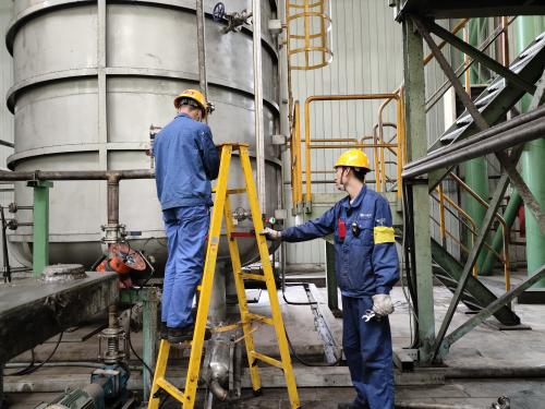 安徽碳鑫科技有限公司一期甲醇年产量为50万吨,自2021年4月开车生产以来经过了3次大修。本次施工特种作业正值“五一”劳动节假期,因涉及交叉作业较多,为了确保本次年修安全顺利完成,实现完美履约,全体一线员工放弃休假奋战在检修现场,用辛勤和汗水诠释劳动之美。