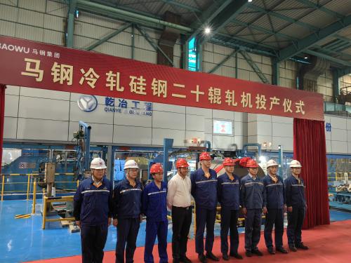 6月21日,马钢冷轧首台二十辊轧机举行投产仪式,意味着该项目正式交付生产。作为宝武首台国产化硅钢二十辊轧机,该机组的顺利投产标志着马钢冷轧已具备批量生产高端薄规格牌号无取向硅钢能力,为新能源汽车用电工钢、家电变频压缩机等提供市场。马钢集团党委书记、董事长蒋育翔,五冶集团上海有限公司工程技术服务公司总经理倪大鹏等出席仪式。