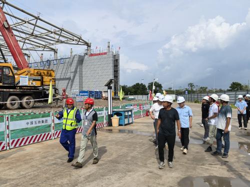 在现场管理人员组织引导下,观摩人员有序参观了项目智慧展厅、工序样板展示区、钢结构拼装区及吊装区、5号馆首层实体样板区。大家详细了解五冶企业发展史、项目概况等基本信息,认真查看展厅内的安全质量管理措施及大数据、物联网等信息化技术手段,仔细观摩部分样板展示中的关键工序节点、钢结构虚拟拼装技术及实体样板的工程质量,过程中各单位观摩人员不时就项目管理中的特色与亮点与五冶管理人员进行交流探讨,现场气氛热烈而活跃。