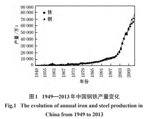 进入21世纪以来,中国钢铁产量以更高的速度增长(图1)。2013年中国生铁产量达到7.089 7亿t,已占世界总产量的61.1%。这一时期有3个因素促使了中国钢铁工业的高速发展:中国经济的高速发展推动市场对钢材的需求增加,为中国钢铁工业高速发展提供了机遇;钢铁工业固定资产投资的增长,为推动钢铁产能迅速扩大提供了物质基础;技术进步是钢铁工业高速发展的推动力。