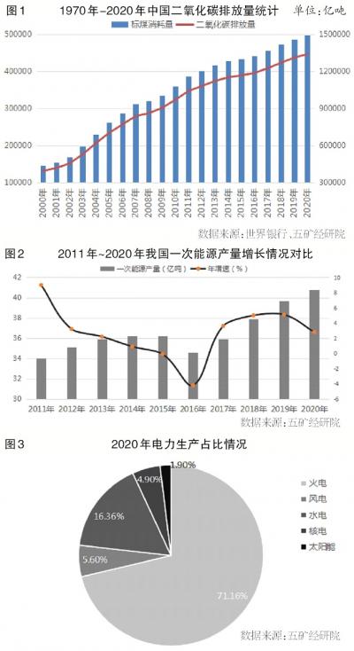 从2020年我国能源结构的构成来看,火力发电占比依然达到71%以上,并贡献了绝大多数的二氧化碳排放量。
