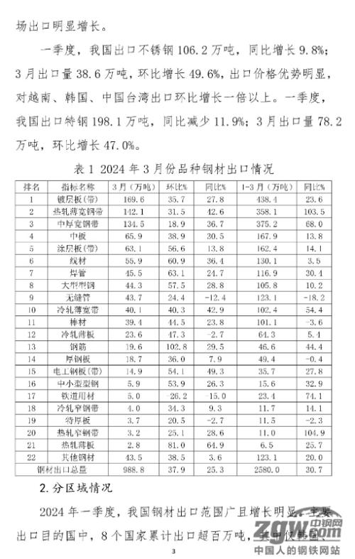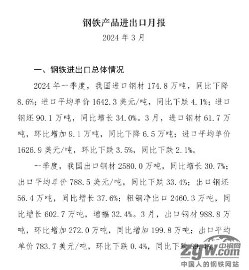 海关统计数据显示,2024年5月,我国出口钢材963.1万吨,环比增长4.4%,同比增长15.3%,增速有所回落;均价783.7美元/吨,环比提高0.8%,同比下降15.0%。1月-5月份,我国累计出口钢材4465.5万吨,同比增...