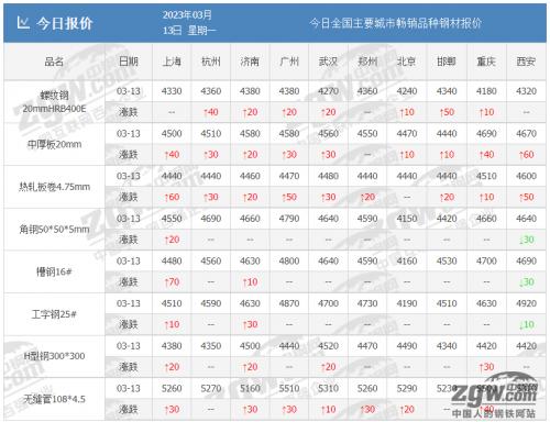一、钢市影响因素 多地优化楼市限售政策:释放改善需求 网传深圳市深汕特别合作区调整了购房限购和限售政策,对此,深汕住建水务局工作人员向媒体回应称,“限购放开了,但是只针对自然人,限售期调整为两年”。继优化限购、限贷政策之后,取消或缩短商品房销售年限的优化限售政策,正在成为各地楼市调控的发力方向之一。 分析师观点:目前国家主基调已定,大力恢复经济发展,宏观向好政策不断涌现,带动各行各业投资预期加大,同时房地产作为经济发展的重要组成部分,财政部及央行运用多种金融工具带动房地产发展,增强购房者信心,降低购房压力,资金流入房地产市场,促进市场活力,带动房地产项目用钢需求量,利好钢价走势。 李强:倍加努力达到5%左右的经济增长预期目标 今天(3月13日),十四届全国人大一次会议闭幕后,国务院总理李强出席记者会并回答中外记者提问。今年,中国的经济增长预期目标现在定在5%左右。现在我们经济总量大了,总量已经过了120万亿,而且现在新的挑战也不少。在这种高基数上,要达到5%左右的增长目标,恐怕也不是件容易的事,需要我们倍加努力。 分析师观点:两会闭幕,新一届领导人信心十足做好经济增长工作,各项政策预期向好趋势不变,大力发展人口红利,新增劳动力接受教育水平增高,输出劳动力效率增强,大力辅助经济恢复发展。同时,政府大力推动基建等重大项目投资,市场资金量充裕,保持项目进度正常进行,增加用钢需求量,利好钢价走势。 制造业全年将呈现走高趋势 3月13日,从中汽协获悉,2月汽车产销分别完成203.2万辆和197.6万辆,环比分别增长27.5%和19.8%,同比分别增长11.9%和13.5%。1-2月汽车产销分别完成362.6万辆和362.5万辆,同比分别下降14.5%和15.2%。 分析师观点:据最新统计数据显示,疫情过后各地市汽车促销活动增多,同时政府补贴刺激居民购车,2月汽车产销环比增加。虽然2月份挖掘机销量同比下降,但降幅有所收窄,但进入3月份,天气逐渐升温,室外施工项目启动,工程机械订货量持续增加,特别是大型挖掘机、矿用自卸车的订货量增加较多,汽车行业走高的趋势向好,利好钢价走势。 二、价格方面 现货市场上涨 据中钢网资讯研究院统计数据显示,今日钢材现货价格偏强运行。 建材24个市场中,12个市场涨10-40元/吨,螺纹钢20mmHRB400E平均价格4355元/吨,较上个交易日均价涨9元/吨; 热卷24个市场中,23个市场涨10-60元/吨,4.75热轧板卷平均价格4469元/吨,较上个交易日均价涨25元/吨; 中厚板20个市场中,19个市场涨10-80元/吨,普中板Q235B平均价格4605元/吨,较上个交易日均价涨25元/吨。 来源:中钢网资讯研究院 钢厂稳中个别涨跌 据中钢网资讯研究院数据显示,今日共24家钢厂调价,其中: 上调8家,占比33.3%,调价幅度10-30元/吨; 下调5家,占比20.8%,调价幅度10-20元/吨; 持平11家,占比45.9%。 期货持红上扬 13日螺纹主力合约涨43,收报4371,涨幅0.99%;热卷主力涨44,收报4459,涨幅1%;焦煤主力涨33,收报2020.5,涨幅1.66%;焦炭主力涨19,收报2938,涨幅0.65%;铁矿石涨4.5,收报929,涨幅0.49%。 钢价预测 目前宏观政策向好趋势不变,国家重点恢复经济发展,稳定大宗消费,推动固定资产投资,带动全社会投资,同时地方政府转向债券3.8万亿元,加快实施“十四五”重大工程,实施城市更新行动,扩大用钢需求量,同时,铁矿石、焦炭成本端持续拉涨,宝武钢铁、鞍钢、本钢等钢企出厂价格维持高位,钢厂挺价幅度加大,商家在买涨不买跌心理作用下,补库量增多,预计明日钢材价格或将稳中偏强运行。