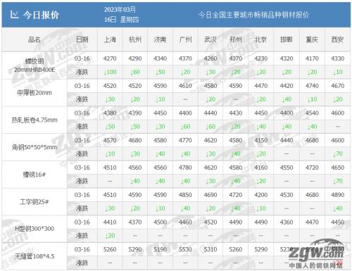 一、钢市影响因素 1、美国硅谷银行危机蔓延至欧 周三瑞信欧股收盘跌超24%,创纪录最大单日跌幅,美股收盘则大跌14.14%。瑞士央行、瑞士金融市场监管局就市场不稳定发表声明。瑞士央行表示,如有需要,将向瑞士信贷集团提供流动性。 分析师观点:虽然美国CPI、PPI数据符合预期,美联储加速放缓,有利于国际大宗商品价格,但受原油及国际银行危机影响,整个国际资金危机四伏,全球股市及大宗商品价格全线下跌,带动国内期货市场大幅走跌,期卷跌超4%,现货市场操作低迷,整体大环境不佳,利空钢价走势。 2、2月压路机、工业车辆等工程机械销量下降 据中国工程机械工业协会对平地机主要制造企业统计,2023年2月当月销售各类平地机437台,同比下降8.96%。1-2月累计销售平地机962台,同比下降9.5%。 分析师观点:目前宏观经济政策向好趋势不变,国家大力发展基建、房地产等项目,鉴于重大项目开工周期较长,春节假期之后基建项目启动缓慢,采购压路机、工业车辆等工程机械量下降,钢材需求量有限,利好钢价走势。 3、55城新房价格环比上涨 国家统计局公布,2023年2月份,70个大中城市中商品住宅销售价格环比上涨城市个数继续增加,各线城市商品住宅销售价格环比总体上涨,一线城市商品住宅销售价格同比上涨、二三线城市同比降幅收窄。 分析师观点:在多部门一揽子政策引导下,住房需求进一步释放,居民购房热度回升,房地产市场资金流入加大,带动房地产企业复工复产增多,提振经济恢复发展。同时与房地产相关的行业需求量加大,带动钢材消费量,利好钢价走势。 二、价格方面 1、现货市场大跌100 据中钢网资讯研究院统计数据显示,今日钢材现货价格下跌运行。 建材24个市场中,22个市场跌10-100元/吨,螺纹钢20mmHRB400E平均价格4340元/吨,较上个交易日均价跌34元/吨; 热卷24个市场中,23个市场跌20-80元/吨,4.75热轧板卷平均价格4455元/吨,较上个交易日均价跌51元/吨; 中厚板20个市场中,21个市场跌10-40元/吨,普中板Q235B平均价格4628元/吨,较上个交易日均价跌16元/吨。 唐山迁安部分普方坯资源降50至4000含税出厂。 来源:中钢网资讯研究院 2、钢厂稳中偏弱 据中钢网资讯研究院数据显示,今日共17家钢厂调价,其中: 上调2家,占比12%,调价幅度100元/吨; 下调12家,占比70%,调价幅度30-50元/吨; 持平3家,占比18%。 3、期货大幅下跌157 16日螺纹钢主力跌154,收报4205,跌幅3.53%;热卷主力跌157,收报4310,跌幅3.51%;焦煤主力跌88,收报1853.5,跌幅4.53%;焦炭主力跌86.5,收报2756.5,跌幅3.04%;铁矿石跌26,收报902,跌2.8%。铁矿石主力合约最低跌破900元/吨关口,日内跌超3%。 钢价预测 目前受国际原油及整个大宗商品市场价格大幅下跌影响,股市及期货市场跌超3%,现货市场操作情绪低迷,市场价格全面下跌,终端采购谨慎观望。同时,本周五大主流品种钢材产量环比增加7.04万吨,钢厂库存环比下降22.39万吨,社会库存环比下降56.32万吨,总库存下降78.71万吨,钢材供应量持续增加,表观需求启动有限,商家补库谨慎,预计明日钢材价格或将稳中个跌运行。