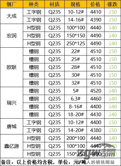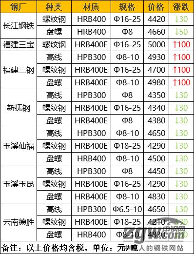 钢厂调价 山西美锦建材价格平稳 福建三钢建材上调100元/吨 福建三宝螺纹钢上调100元/吨 云南德胜建材下调30元/吨 玉溪玉昆建材下调30元/吨 玉溪仙福建材下调30元/吨 新抚钢建材下调30元/吨 长江钢铁建材下调30-50元/吨 普阳中厚板价格平稳 敬业中厚板价格平稳 电力角钢下调50元/吨 欧联槽钢下调50元/吨 宏润H型钢下调40元/吨 大成工字钢下调50元/吨 唐城工字钢下调50元/吨 鑫亿源H型钢下调40元/吨 瑞兴/瑞隆槽钢下调40元/吨 钢厂调价占比 据中钢网资讯研究院数据显示,今日共17家钢厂调价,其中: 上调2家,占比12%,调价幅度100元/吨; 下调12家,占比70%,调价幅度30-50元/吨; 持平3家,占比18%。 废钢调价信息 3月16日沙钢废钢价格下调50元:重一3290重二3260重三3230钢筋切粒一3340优质废钢一3350清洁废钢一3350炉一3310炉二3280剪中3200粉碎料一3210粉碎料二3170中一3170中二3140小一3070小二3020小废三2970统废2820压块一3010压块二2960原料压块一2970原料压块二2920切碎原一3070切碎原二3020,含税13%,具体废钢价格以2023-F5价格为准。 3月16日山西新金山废钢价格下调30元,执行价:16厚特级料3050,10厚特级料3020,一级料2940,10厚边角料3050,6厚边角料2990,10厚马蹄铁3020,6厚马蹄铁2990,3-6厚马蹄铁2950,钢筋颗粒、冲豆3050,不含税,单位:元/吨。 3月16日春兴废钢采购价格下调20元:一级3130,二级3120,三级3110,四级3090,五级3070,六级3010,钢筋头3110,前后桥2990,单位:元/吨。 3月16日徐钢集团废钢下调20元,调整后:优质钢板3080,钢板料1#3030,精炉料1#3040,炉料1#2920,优质重废1#3040,重废2970,钢筋压块2960,钢板压块1#3010,钢筋切粒1#3100,中废2820,小废2680,统废2320,汽车壳2520,不含税。 3月16日重庆足航钢铁公司所有废钢下调40元:(6-8厚)2820-2870 ,(4-6厚)2770-2820,(2-3厚)2660-2710,大车前后桥.已拆发动机2870,汽车壳2330左右,中等-中上门市2390-2440,易拉罐-彩钢瓦2010-2120,车屑2560。特别注意:看不穿的压块一律不收,带油车屑一律拒收。严禁来货中,塑料袋子、地灰渣,特别密封件,轮胎,易燃易爆危险品,一经发现从重处罚。 3月16日山西新泰钢铁废钢下调30元,执行价:重A3040,重B3010,重C2980,钢筋头A3070,钢筋头B2970,道轨3050,钢板边角料3040,拆车优质废钢3030,优质重废3070,干洗机生铁3030,钢筋压块B2980,不含税。 3月16日唐山正丰废钢价格下调30元执行:废钢2-3厚2900,3-5厚2950,6厚以上2980,8厚以上3000,钢筋小压块2970,新冷板压块2860,新铁丝压块2760,镀锌小料2890,一级破碎料3000,整普销2550,生铁暖气片、面包铁2930,小钢刨屑2870,一级剪切2880,三级剪切2770,彩瓦小压块2600,不含税。 3月16日广东河源德润废钢价格下调20元:钢筋切粒3100,边角料(新钢板料)3100;直钢筋纯钢筋头3080;模具钢料头圆钢、轨道钢火车轮3100;硅钢片停收;冷轧、热轧、碎料冲子3030;纯钢筋压块停收,优重3080;锻打料、马蹄铁3100;重废3030;机械生铁、高碳钢、铸钢件、生熟混装3030;厚剪2980,中剪2920,小剪、打包料2780,普刨花2800,不含税。 3月16日广东江门宝丰废钢价格下调20元,优重、钢筋头2920,纯钢筋压2920,乱钢筋2880-2910,重废2890船板料、钢模板2770-2800,硬钢、生铁2890,冷轧冲子2870-2900,冷轧冲片2850-2870,冷轧压2840-2870,中剪2830,小剪2650-2710,一级钢屑2620,普刨丝2520-2580,角铁2540-2630,统料2400-2500,不含税。 3月16日中天(南通)钢铁废钢价格下调50元,调后执行价:精炉料3290,炉料3230-3260,重废3140-3200,中废2990-3110,轻废2750-2980,破碎原料2950-3050,含税,单位:元/吨。