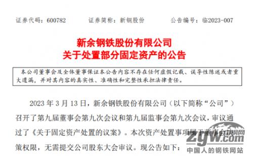 日前,新钢股份(600782.SH)发布关于处置部分固定资产的公告,具体情况如下: