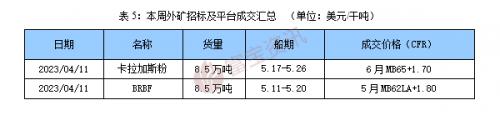 2.国内外矿钢动态澳洲铁矿发运大港黑德兰港重新开放当地时间2023年4月14日上午9点03分,气象局(BoM)通知热带气旋“伊尔莎”位于特尔弗西北偏西约105公里处,Marble Bar以东约160公里处。随着气旋向内陆移动,强度正在减弱。皮尔巴拉港务局已对航标、航道和泊位进行检查,以确保恢复安全运营。截至当地时间上午11:00,皮尔巴拉港务局将重新开放黑德兰港。同时皮尔巴拉港务局也正在与码头和船舶运营商以及利益相关者联络,以计划重新开始航运。宝武集团与力拓联合开发西坡铁矿项目2月开工建设据报道,力拓首席执行官Jakob Stausholm在3月北京举办的中国发展高层论坛提到:宝武集团与力拓联合开发西坡(Western Range)铁矿项目上月开工建设。据了解,就该项目宝武集团与力拓于2022年9月份成立合资企业,并签订合作协议,双方权益比例为46%和54%。该项目是现有宝瑞吉合资项目(东坡项目)的延续。西坡项目位于西澳大利亚皮尔巴拉地区,目标是在合资期限内生产2.75亿吨铁矿石,项目设计产能为2500万吨/年,平均品位约62%,总投资约20亿美元,预计2025年投产。此外,双方还达成一项铁矿石采购协议,宝武将按照权益比例在13年内以市场价格采购力拓总量1.26亿吨的铁矿石产品,年采购约1150万吨。