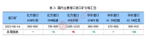 ◇趋势预判:短期普指参考115-120美金附近。基本面、宏观面利好驱动不足,下游需求弱势,短期矿价承压下行,但底部需求有支撑。进口矿:本周矿价涨跌互现,现62普氏指数118.95美金。周均较上周低约0.5美金。连铁主力770-800元宽幅调整,短期维持震荡走势。周内钢材需求依然较差,钢厂利润持续收缩,矿价跟随黑色系下跌。周中受澳洲极端天气影响短暂反弹。现铁矿石自身低库存、高疏港,高炉高开工率和高铁水产量支撑矿价。减产传闻干扰但尚未落地,钢厂暂无集中检修计划,刚需仍在。现旺季需求难以兑现,多部委召开会议稳经济措施有望上新。料短期矿价震荡运行,普指参考120美金附近。国产矿:本周内粉偏弱,矿企降库存适价出货为主,下行趋势下钢厂多压价操作,随用随采。唐山66资源830-840元。62回转窑球团价格1080-1180元。山东、安徽、邯邢局等大矿4.15日价格降5元左右。一、市场行情回顾1.国产矿方面本周国产矿市场偏弱调整。普指期货均创阶段新低,矿企担忧后市需求,降库存适量出货操作,报价松动。唐山66资源830-840元,69高钛资源875元出货,矿选采买原料谨慎,低品市场僵持冷清。承德区域铁粉库存较高,出货不畅,价格跟随周边下降,宽城65钒钛粉950元。邯邢65碱粉900-905元,短期偏弱5元左右。山西地区由于资源紧缺,降幅不明显65中高硫资源790元,钢企有询货山东资源。华东地区周内枣庄大矿由于资源偏紧上调10元,65干基含税1040元,鲁中等大矿明日下调5元左右。繁昌维稳65造球精粉1070元,庐江1050元。辽宁地区弱势运行,贸易商对后市看跌持续压价,矿企随行就市操作,部分低价出货意愿弱,65资源在740-760元。短期内粉市场偏弱运行。 2.进口矿方面本周普指涨跌互现,周四118.95美金较上周五低0.7美金,周均值在120美金附近。主港PB粉成交价高点896元,成交低点在875元。连铁主力期货770-800元宽幅震荡,短期仍延续弱势。周内钢材表需继续回落,旺季预期落空,市场情绪悲观,铁水续增基本见顶,铁矿石基本面转弱,跟随黑色系整体走低。周中矿价受澳洲极端天气干扰反弹,后证实无实质影响,矿价再次回归跌势。虽然减产消息一直有传言未落实,但钢厂利润连续下滑加上成材库存较高,部分钢厂开始计划检修,矿价承压。不过,面对较差的经济数据,据悉多部委召开会议,稳经济措施有望上新。现货方面,贸易商报价随行就市,适量出货为主,投机需求较弱,钢厂维持极低库存,按需采购操作谨慎。成交以主流中品粉矿为主。关注下周疏港量止增情况。综合看,矿价延续弱势下行,但刚性需求仍在,底部存支撑。普指参考115-120美金附近。