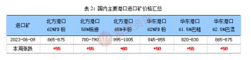 ◇趋势预判:普指短期参考115美金附近。短期延续偏强走势,谨防高位回落风险。关注港库、钢厂利润和下游需求以及宏观刺激的延续性。进口矿:本周矿价偏强运行,现62普氏指数114.5美金。周均较上周高约8美金。连铁主力强势突破800大关,谨防高位回落风险。周内利好密集,外围金融风险降低,国内地产和基建高预期,下调存款利率以及高降准预期,钢厂利润改善铁水高位减产压力降低,铁矿自身基本面表现偏好等,整体供需平衡,市场心态向好。现货端远期有投机需求,市场活跃度好转,料短期矿价偏强震荡,但成材高度有限,制约矿价震荡反复表现。普指参考115美金附近。国产矿:市场稳中偏强,受行情上涨带动,持货矿企盼涨高要。钢厂虽有利润但压价心态仍在,调涨意愿不高,资源错配明显,唐山山西缺货严重,钢厂跨区域询货。唐山66资源780-800元。北方62回转窑球团1000-1050元。预计山东、安徽、邯邢等大矿6.10日价格涨60元左右。一、市场行情回顾1.国产矿方面本周国产矿市场偏强运行。期货强势带动下,矿商惜售高要操作。唐山地区低品资源匮乏高要明显,66资源执行订单为主,受钢厂压价导致交投一般。周内钢坯累涨较多,钢厂库存偏低,料短期矿价有一定上调幅度。现66资源780-800元。承德市场宽城涨10元,平泉累涨20元,短期仍有偏强空间。邯邢区域大矿周末预计涨60元左右,钢企多去安徽山东寻货,导致市场交投冷清。山西地区资源供应无好转,原料库存不足,持货矿企高要盼涨,个别球团厂复产62回转窑球团1050-1060元,代县65精粉中高硫740-750元,太钢精粉下周有大幅上调预期。华东地区,鲁中、五矿等大矿明日上调60元左右,枣庄大矿周内累涨50元报1010,繁昌当前65造球精粉970-980元。辽宁市场主稳运行,矿企延续挺价状态,贸易商不认可当前高价,询货谨慎。65资源730-760元。短期内粉市场偏强运行。 2.进口矿方面本周普指大幅累涨,现指数114.5美金较上周五高约10美金,周均值在111.7美金左右。连铁主力期货强势拉涨破800元大关,短期高位震荡,谨防回落风险。周内利好消息密集出台,外围金融风险降低,国内地产和基建高预期,下调存款利率以及高降准预期,钢厂利润改善铁水高位减产压力降低,铁矿自身基本面表现偏好等,整体供需平衡,市场心态向好。现货端远期有投机需求,市场活跃度好转,成交以PB粉、超特粉和块矿资源为主,钢厂保持低库存谨慎询货操作,主港PB粉成交价高点840元,成交低点在813元。料短期矿价偏强震荡,但成材高度有限,制约矿价震荡反复表现。后续关注钢厂利润、港存累库以及成材表需向好的持续性。料短期矿价高位震荡运行,普指参考115美金附近。