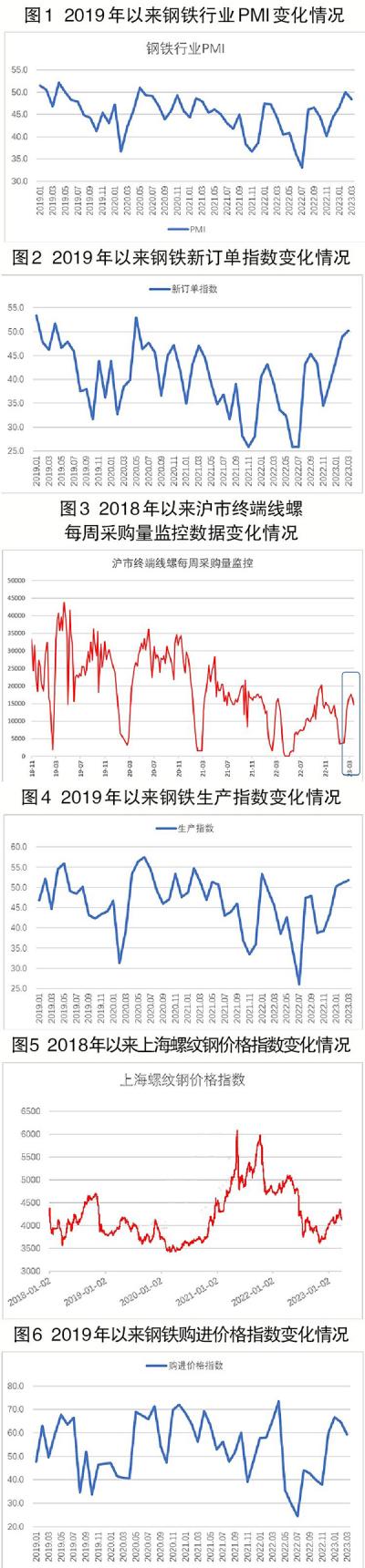 从中物联钢铁物流专业委员会调查、发布的钢铁行业PMI(采购经理指数)来看,3月份为48.4%,环比下降1.7个百分点,结束连续3个月环比上升势头,再度回落至50%以下,显示钢铁行业运行仍面临波动。分项指数变化显示,市场需求持续恢复,但恢复力度不及企业预期。钢厂生产保持上升,钢材价格冲高回落,3月份整体有所下降。值得关注的是,钢厂对后市预期有所偏紧,原材料采购活动也趋于谨慎。预计4月份,钢材市场需求继续上升,钢厂生产小幅增长。铁矿石价格继续回落,钢材价格冲高动力不强。
