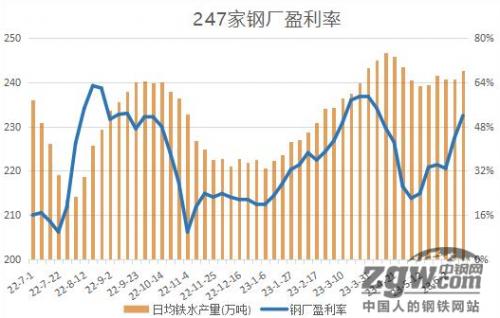 长流程钢厂即期利润持续回升,且已处于相对较高水平。本周247价样本钢厂盈利增加8.23个百分点至51.95%,创近两个月新高,进一步提高钢厂生产积极性。