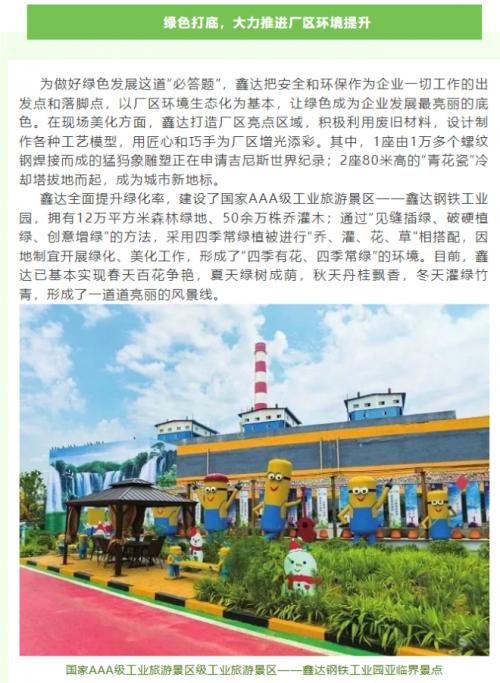 谱写绿色低碳发展新篇章,“天蓝水清地绿”是十分重要的一环。河北鑫达钢铁集团有限公司(以下简称鑫达)坚持“绿水青山就是金山银山”的理念,治本入手、科学防治、绿色打底,不断擦亮绿色生态底色,高度重视环境保护和循环经济发展,始终秉承“创新绿色开放共赢”的发展理念,以铁的决心、铁的措施、铁的手腕抓环境治理。近两年来,鑫达在环保方面累计投资达54亿元,现已成为环保绩效A级企业。