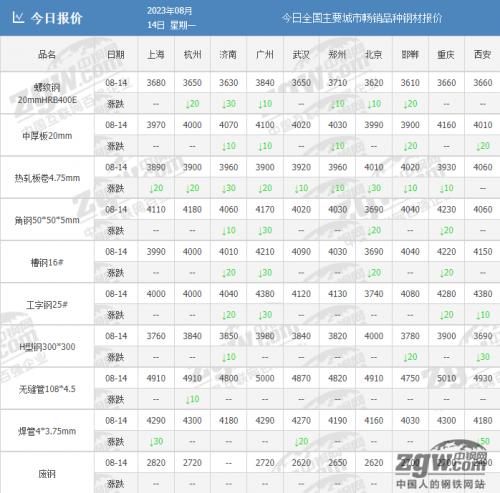 8月14日,盘面震荡偏弱,螺纹跌破3650关口。螺纹收3641元跌31,热卷收3889元跌31,焦炭收2192元跌23.5,铁矿收725元跌3。
