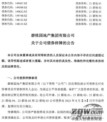 地产悲观情绪继续蔓延,碧桂园多只债券自2023年8月14日开市起停牌。停牌公告发布前夕,碧桂园发布盈利预警,据其初步评估,今年上半年的净亏损将处于450亿元至550亿元之间,而去年同期的净利润为19.1亿元。
