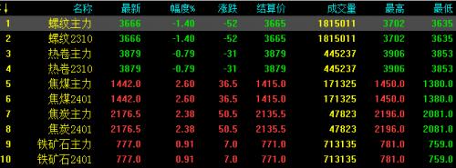 21日螺纹钢主力跌52,收报3666,跌幅1.4%;热卷主力跌31,收报3879,跌0.79%;焦煤主力涨36.5,收报1442,涨幅2.6%;焦炭主力涨50.5,收报2176.5,涨幅2.38%;铁矿石涨7,收报777,涨幅0.91%。