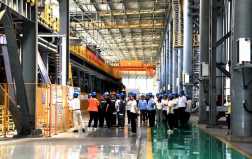 随后,大家前往承德钒钛的冷轧产线。在这里,《中国冶金报》记者看到,在酸洗区域,一辆无人天车从产品库存区域上空安全、快速驶过;在镀锌区域,“铛铛”几声,一卷钢卷在产线上顺利展开,随即进入各设备高速运转,除了来参观的中国冶金报社一行,生产线上看不到任何工人。