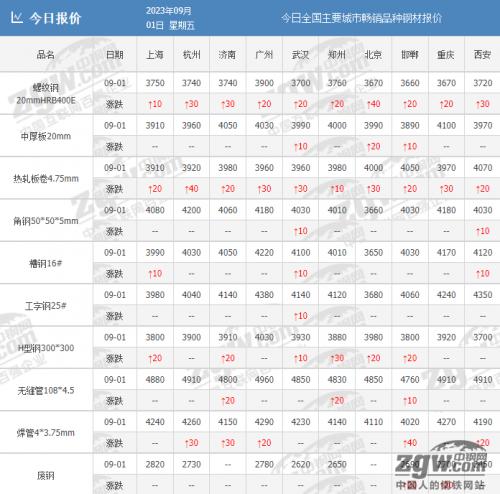9月1日,据中钢网资讯研究院数据显示(微信公众号:中钢网),今日共23家钢厂调价,其中: