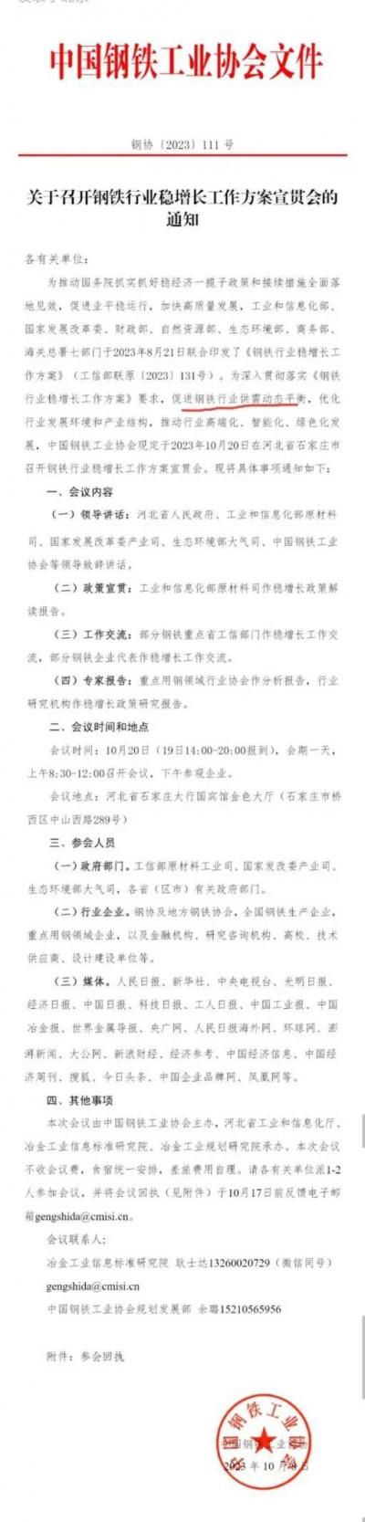 据分析师调研反馈的消息,2023年10月11日零时起,内蒙古源通煤化集团上调焦炭价格,国标二级焦炭、三级焦炭场地价格各提涨100元每吨,成本端的支持仍在,钢企亏损幅度继续加大,负反馈来的更猛烈,在政策及自身亏损的双重压迫下,钢企停产检修将会更多,然而钢材供应是否能如期大幅下降仍然存疑,旺季不旺即将成为定局,市场成交日益低迷,商家补库情绪回落,钢厂利润上行缺乏动力,传统的钢贸商利润微薄,大多数不要乱动,预计明日钢材价格将稳中个跌运行,幅度20-50元/吨。