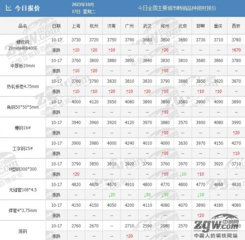 10月17日,据中钢网资讯研究院数据显示(微信公众号:中钢网),今日共23家钢厂调价,其中:
