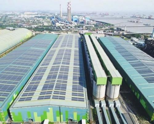 图片图为中冶宝钢承建的宝钢股份宝山基地煤场全门架料场光伏发电项目。