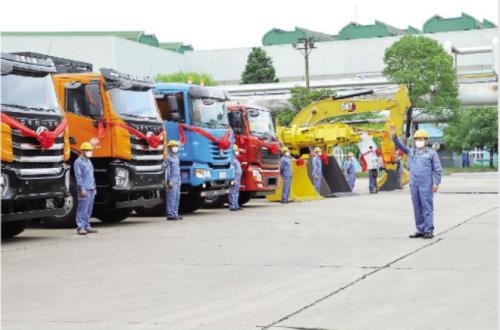 为清洁运输更新装备。为全力推进厂区清洁运输、降低碳排放,中冶宝钢分批次为宝钢股份宝山基地、东山基地、青山基地更新工程机械和运输车辆700余台(套),为钢厂节能降耗减排提供个性化解决方案。其中,用于高炉水渣运输的新能源水渣车为中冶宝钢自主研制,采用纯电驱动,与国内同类车型相比具有动力更强、蓄能更多、续航里程更持久等优点,满足钢厂“人停机不停”生产模式。自工程机械和运输车辆投运以来,中冶宝钢不断优化工序衔接,持续提升服务能力,以安全、高效、精细的服务,打造清洁运输标杆。