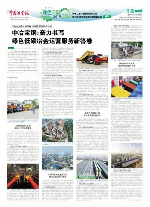 党的二十大报告指出,加快发展方式绿色转型,推动经济社会发展绿色化、低碳化是实现高质量发展的关键环节。作为支撑国民经济发展的支柱性行业,钢铁工业是实现“双碳”目标的重要领域。中冶宝钢技术服务有限公司(简称中冶宝钢)作为中国五矿、中冶集团旗下专门从事冶金运营服务的重要骨干子企业,深入贯彻习近平生态文明思想,认真学习党的二十大精神,践行绿水青山就是金山银山的理念,围绕高质量发展主线,把绿色低碳发展贯穿于冶金运营服务全流程,加快推进技术创新、模式革新、服务更新,助力钢铁产业链、供应链转型升级,奋力书写绿色低碳高质量发展新答卷。