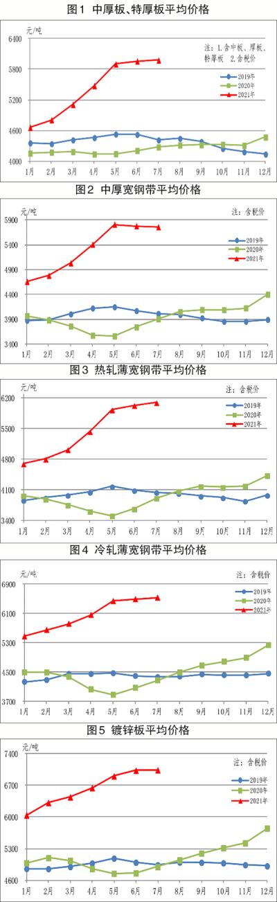 7月份,重点统计企业生产中厚宽钢带693万吨,同比增加14万吨,增长2.1%;销售698万吨,其中出口20万吨,产销率为100.8%;售价5756元/吨,比6月份下跌21元/吨。