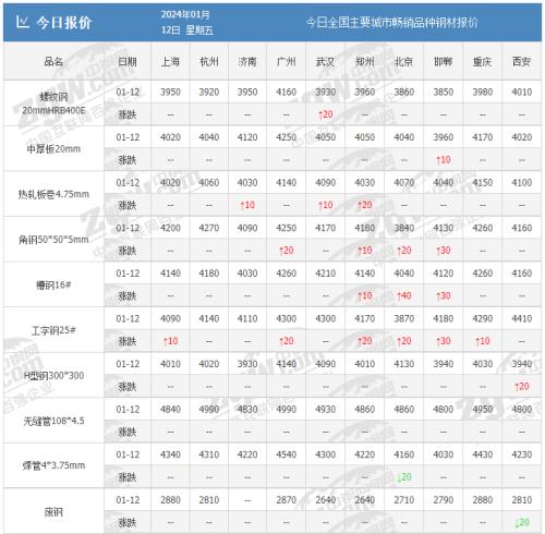 随着11日晚公布的美国12月CPI数据超预期,美国经济通胀率降幅收窄,美联储降息预期延后,美元指数继续走高,导致大宗商品价格下行,资本投资预期回落,期货及股市受到连带影响,国内钢材现货价格上涨动力不足,商家操作情绪低迷,利空钢材价格走势。