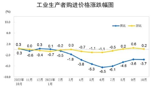 本报讯10月份,全国工业生产者购进价格同比下降3.7%,环比上涨0.2%。其中,黑色金属材料类购进价格同比下降2.1%,环比上涨0.2%。