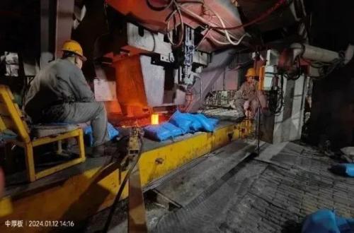 图为河钢集团唐山中厚板公司与北京联合荣大携手刷新连铸中间包浇铸时长181小时01分业界新纪录。