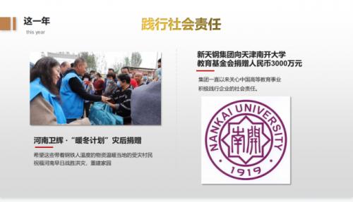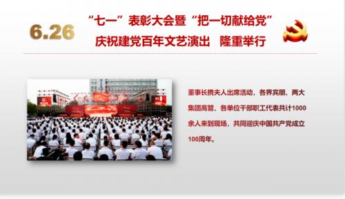 一是关注企业党建,建设党建标杆。德龙、新天钢集团隆重开展系列庆祝活动200余次,还在天津大剧院音乐厅举办“听党话、爱中华”大型交响合唱音乐会、亲自到红色教育基地学习等;此外还制订了大量强化企业党建的规章制度。