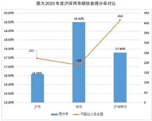 沪深两市企业碳信息披露得分接近。《报告》显示,在开展碳信息披露工作的企业中,沪市碳信息披露得分率为16.59%;深市碳信息披露得分率为19.50%,深市企业碳信息披露得分率略高于两市总体平均得分率。
