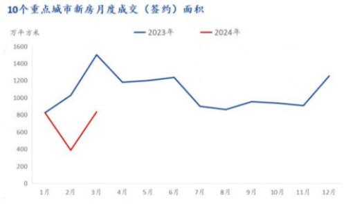 2024年3月,10个重点城市新建商品房成交(签约)面积总计833.87万平方米,同比降44.4%,环比增115.8%。10个重点城市二手房成交(签约)面积总计773.88万平方米,同比降28.4%,环比增108.3%。