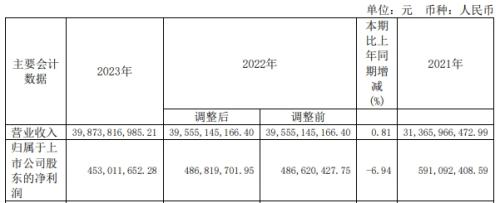 甬金股份4月16日披露2023年年报。2023年,公司实现营业总收入398.74亿元,同比增长0.81%;实现净利润4.53亿元,同比下降6.94%。