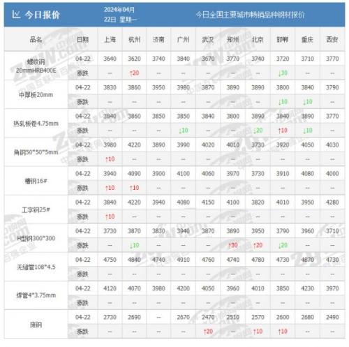 建材24个市场中,1个市场涨10-30元/吨,4个市场跌10-20元/吨,螺纹钢20mmHRB400E平均价格3766元/吨,较上个交易日价格跌6元/吨;