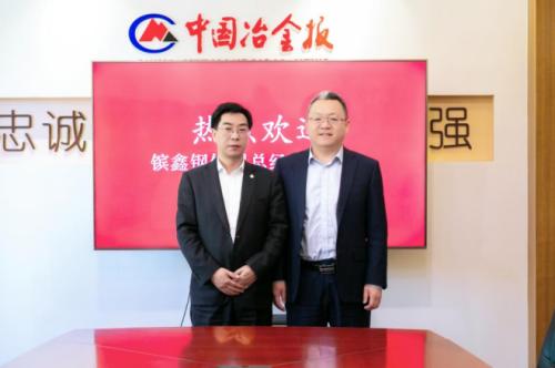 4月24日,江苏省镔鑫钢铁集团有限公司(以下简称“镔鑫钢铁”)副总经理于原浩一行到访中国冶金报社,与中国钢铁工业协会副秘书长,中国冶金报社党委书记、社长范铁军就双方未来合作展开交流。