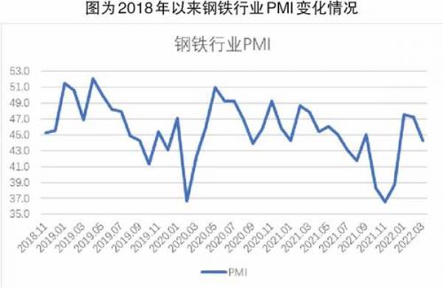 从中物联钢铁物流专业委员会调查、发布的钢铁行业PMI(采购经理指数)来看,3月份为44.3%,环比下降3.0个百分点,钢铁行业增速下降。从分项指数变化来看,3月份,国内疫情多点散发,对钢铁行业影响较为明显,钢厂生产有所下滑,市场需求整体收紧,原材料和产成品物流运输压力加大,市场价格上升。后市钢铁行业具有稳定回升基础。