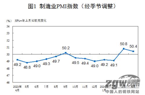 今日国家统计局发布PMI指数显示,中国4月官方制造业PMI50.4,预期50.4,前值50.8。整体较上月下降0.4%,维持在景气区间,连续两个月高于50,保持在景气区间,宏观回升势头平稳。