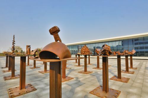 在打造景区的过程中,新天钢更加注重对钢铁精神的艺术化表达。如今,漫步于景区中,一尊尊风格各异的钢铁雕塑默默诠释着刚柔并济的钢铁之美,有的出自当代艺术名家之手,有的是钢铁工人的创意之作,散落在草木间,让工业之美与自然之美相得益彰。天钢公司厂区内,去年为迎庆建党百年,邀请名家与青年艺术家共同打造的“华灯璀璨”光影雕塑艺术群熠熠生辉。