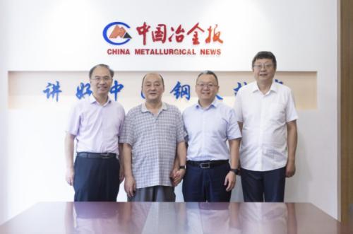 8月20日,中冶宝钢领导齐冬平、中国机电产品流通协会副会长兼智能矿山分会会长张立宽到访中国冶金报社,与中国钢铁工业协会副秘书长,中国冶金报社党委书记、社长范铁军,冶建钢构部主任杜笑进行座谈交流。
