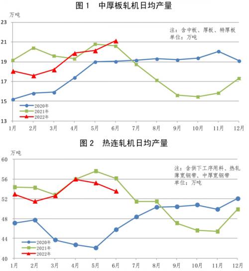 1月—6月份,三类轧机累计产量同比均小幅下降。主要品种板中,除造船板和桥梁板累计产量实现同比上升外,其他品种板产量均有所下降。
