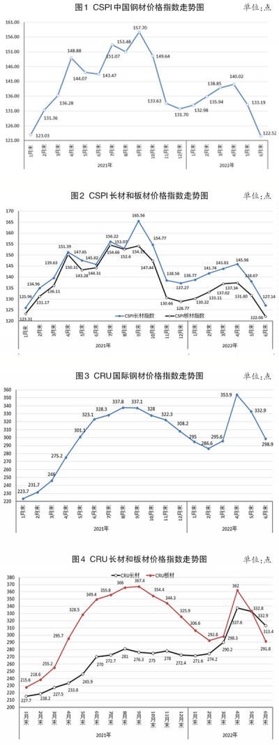 1月—6月份,CSPI长材指数平均值为139.26点,同比下降1.53点,降幅为1.09%;CSPI板材指数平均值为131.92点,同比下降6.28点,降幅为4.54%,比长材高3.45个百分点。