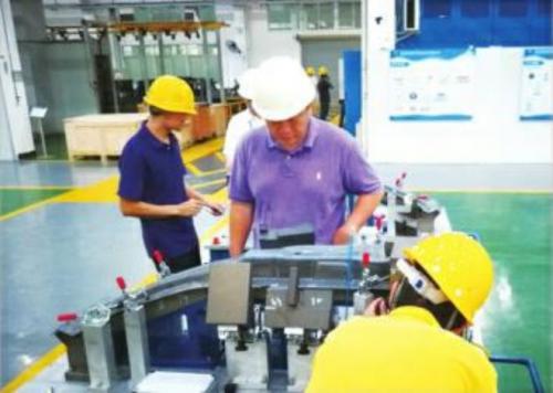 该团队成员在中锰钢温成形汽车B柱试制现场
