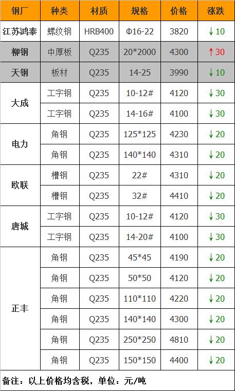电力角钢下调20元/吨